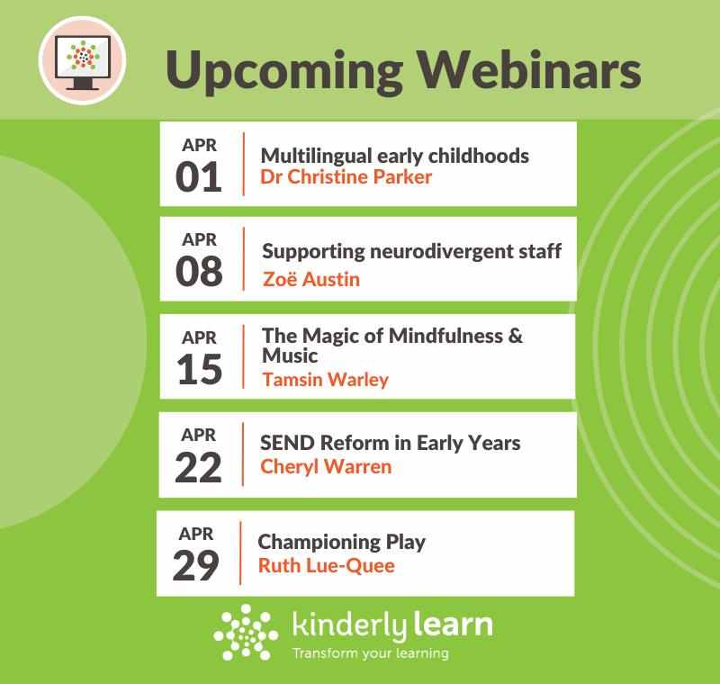 Each week we carefully monitor what topics/issues our members would like training on. This results in a very diverse programme. Last year, we ran webinars on everything - wellbeing, SEND / autism, policy, pedagogy, all types of play, maths / STEM, behaviour, transitions, equality - to name but a few!